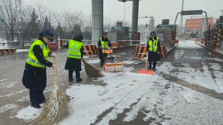 1月17日,白草畔地区遭遇强降雪天气,积雪快速堆积并覆盖收费站广场、收费车道及进出站连接线,形成明显结冰层,给过往车辆通行和群众出行安全带来极大隐患。白草畔收费站以雪为令、闻雪而动,立即启动除雪保通应急...[详细]